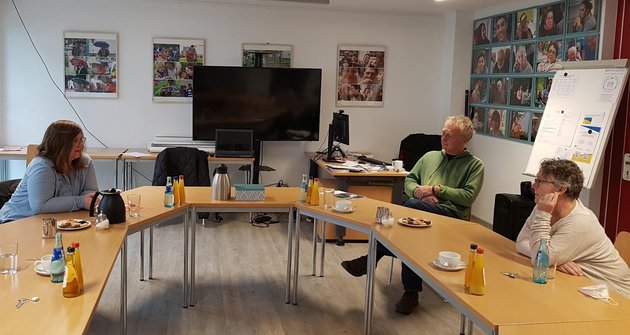Am nächsten Tag stand der Besuch des Stadtteilbüros auf der Agenda. Heike Bülter und Eberhard Roth berichteten über die Entwicklung des Stadtteilbüros und die Bedeutung für die Siedlung. In den vergangenen 22 Jahren seit dem Start der „Sozialen Stadt“ engagieren sich Bewohnerinnen und Bewohner der Siedlung für ein gutes nachbarschaftliches Zusammenleben. Gemeinsam wird das Umfeld geplant und gestaltet, Feste gefeiert, neue Nachbarn begrüßt, Migrantinnen und Migranten durch Integrationslotsen unterstützt, in den Siedlungsgärten gesät und geerntet, Suppe gekocht, Kuchen verkauft und Müll aufgelesen. Kinder und Jugendliche nehmen das Angebot von Eberhard Roth gerne an und machen gemeinsame Unternehmungen, spielen auch mal nachts Fußball und helfen beim Aufräumen oder Grillen.