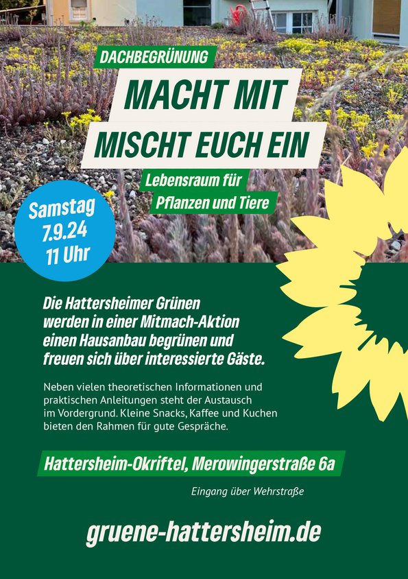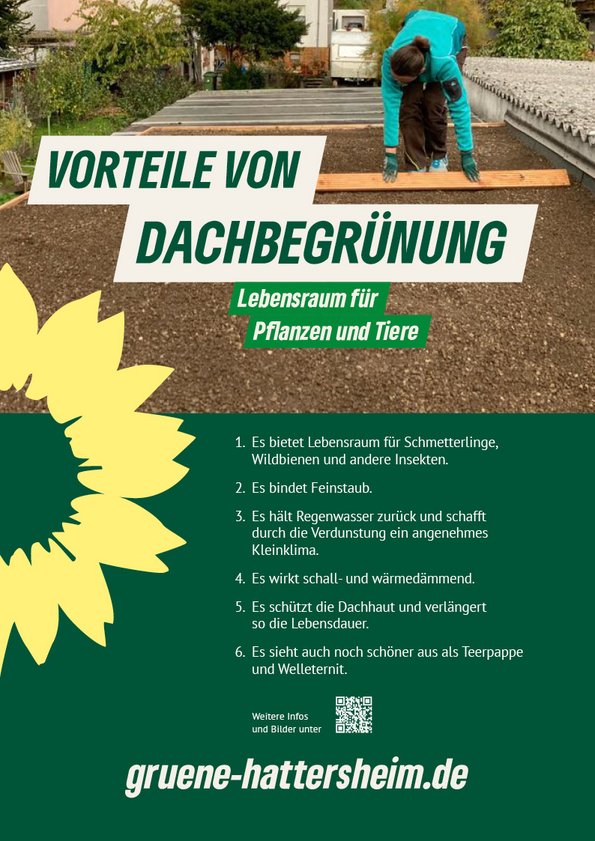 In vergangenen Sitzungen der Stadtverordnetenversammlung schlug die Fraktion BÜNDNIS 90/DIE GRÜNEN mehrfach vor, „die Gestaltung von Außenanlagen und Gebäudehülle, zum Beispiel durch eine Begrünung und wasserdurchlässiges Material klimaneutral zu gestalten."Dies wird bisher nur teilweise umgesetzt, jedoch hoffen wir, wenn unser Antrag zur Schwammstadt angenommen wird, eine:n Expert:in zum Thema hören können und Maßnahmen für Hattersheim finden zu können“, führt Ferko weiter aus. Ein weiterer Punkt der mehrfach von der GRÜNEN Fraktion vorgeschlagen worden ist, ist die Ausstattung von Geböudeoberflächen mit Photovoltaikanlagen.