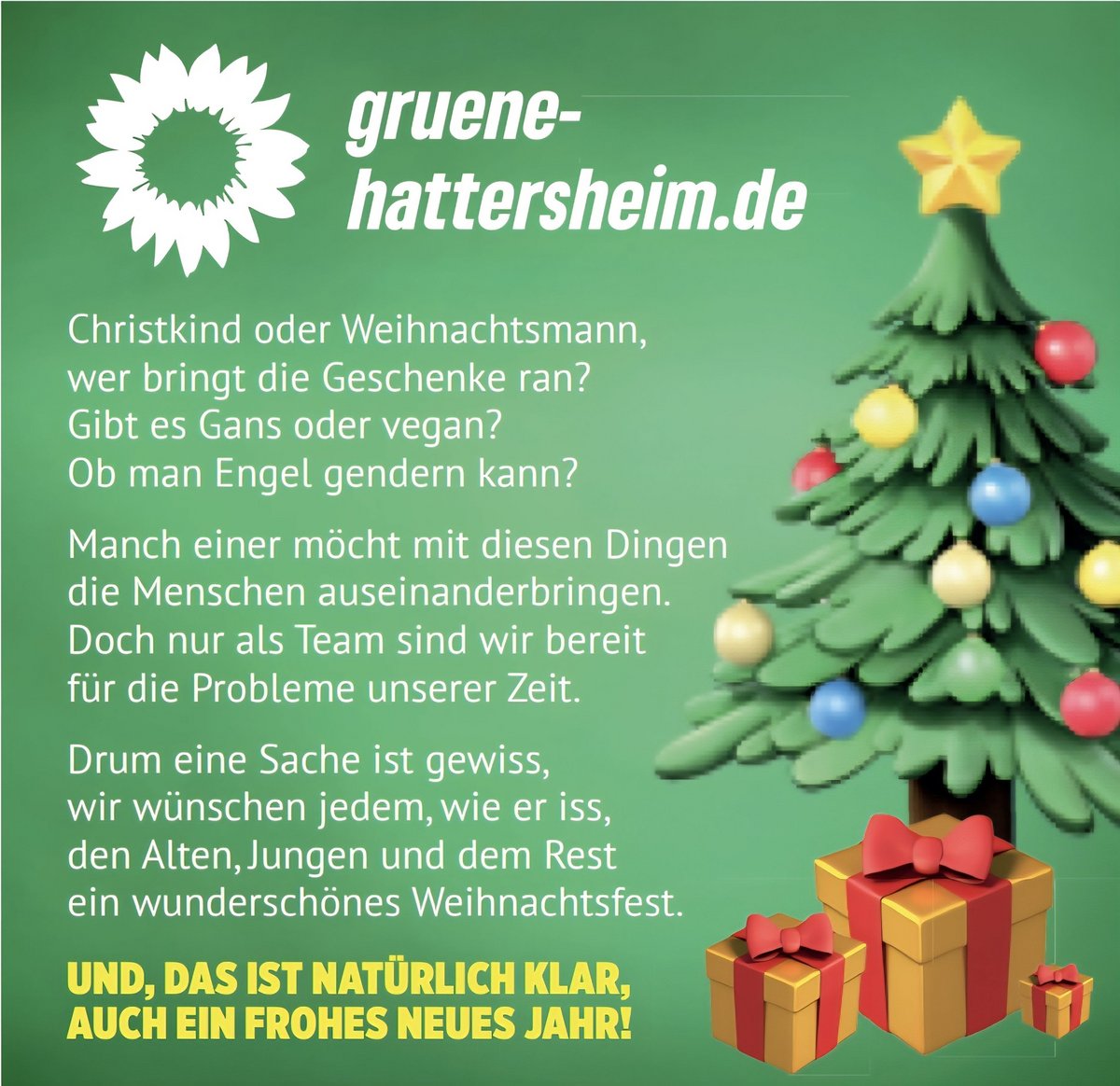 Die Hattersheimer Grünen laden zu ihrem Stand auf dem Weihnachtsmarkt ein
